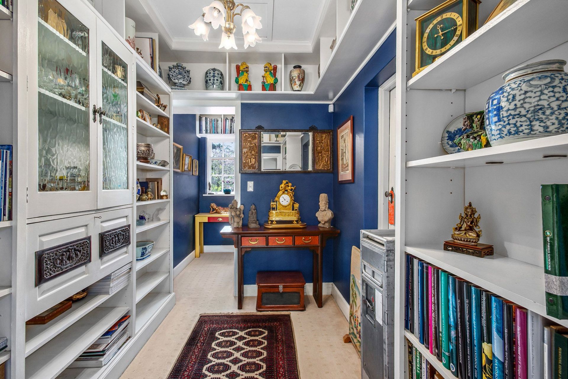 The main kitchen provides plenty of storage, an island breakfast bar and an Ilve range with a six-burner gas cooktop and extra-wide oven, lounge and dining areas provide exceptional space with versatility for formal and relaxed living and entertaining, including an intimate library.