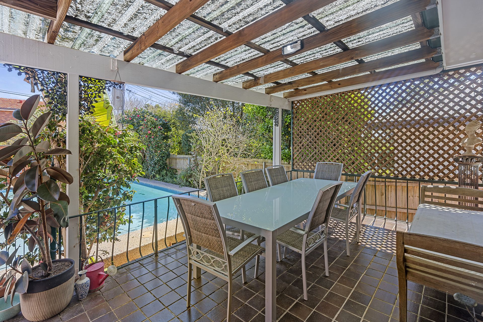 -Living opens to front covered verandah and in-ground swimming pool