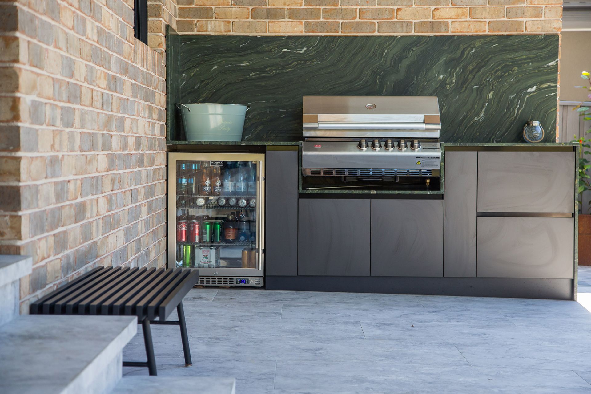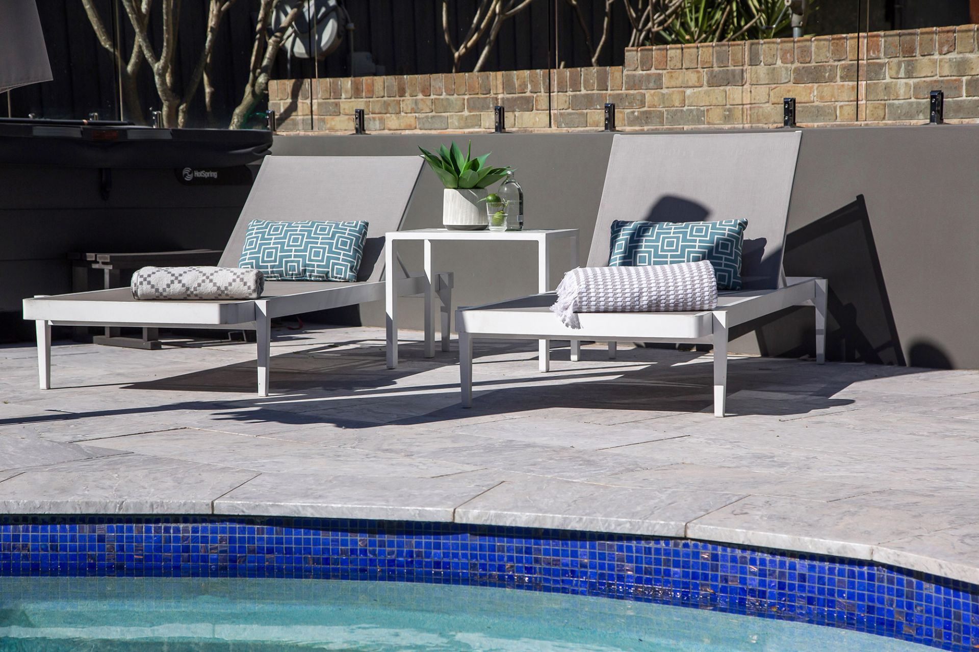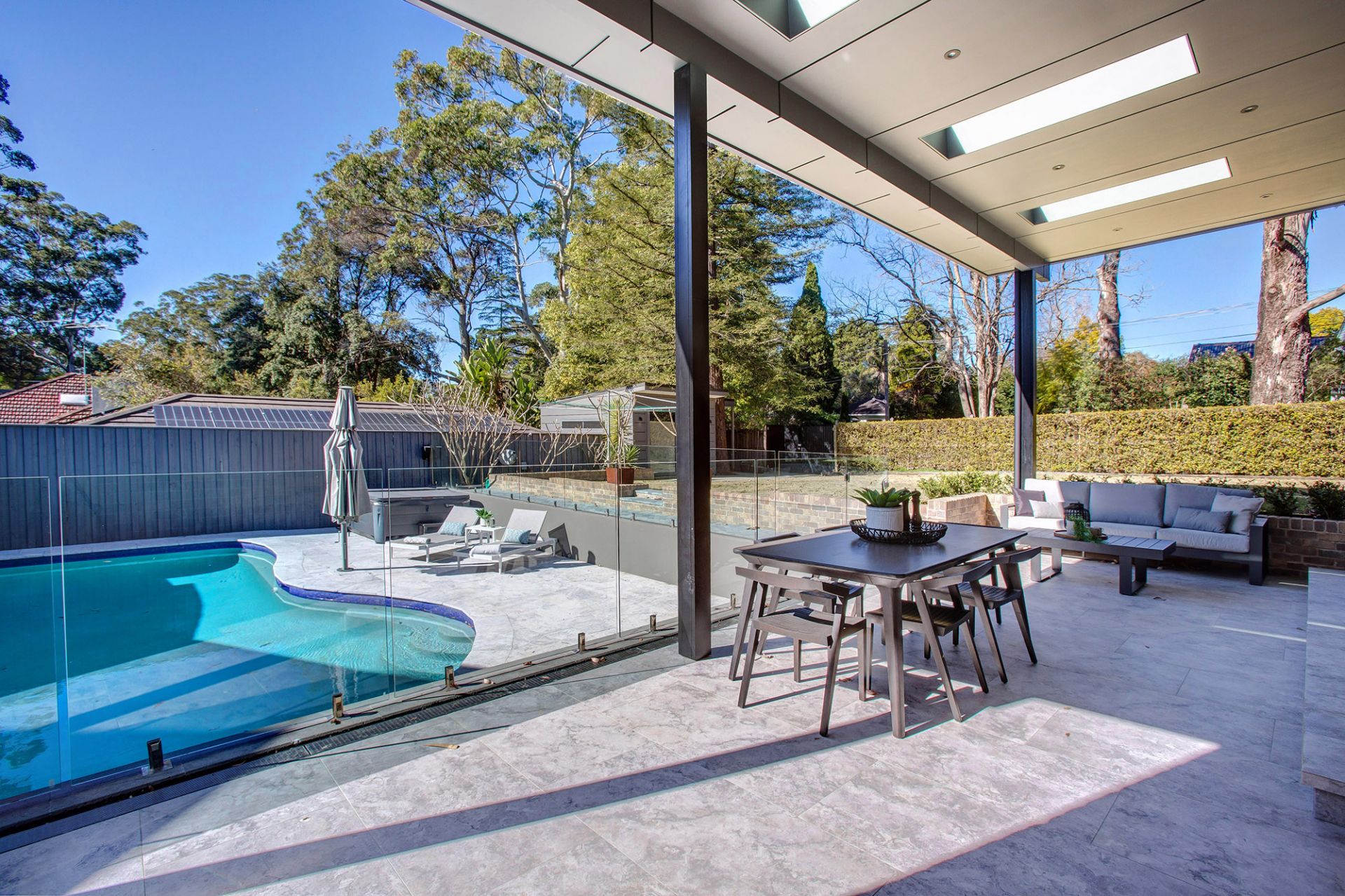 -Rear garden with swimming pool & spa, in-built BBQ with fridge