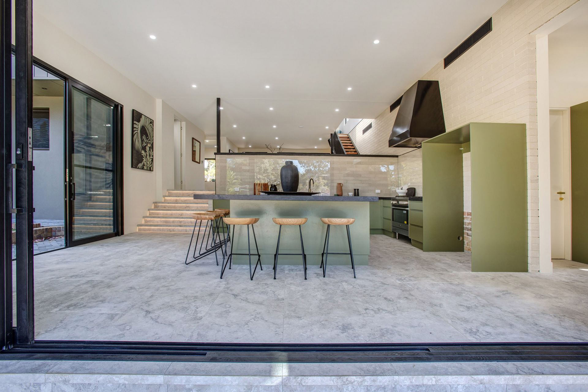 -Breakfast bar kitchen/dining with butler's pantry to covered terrace