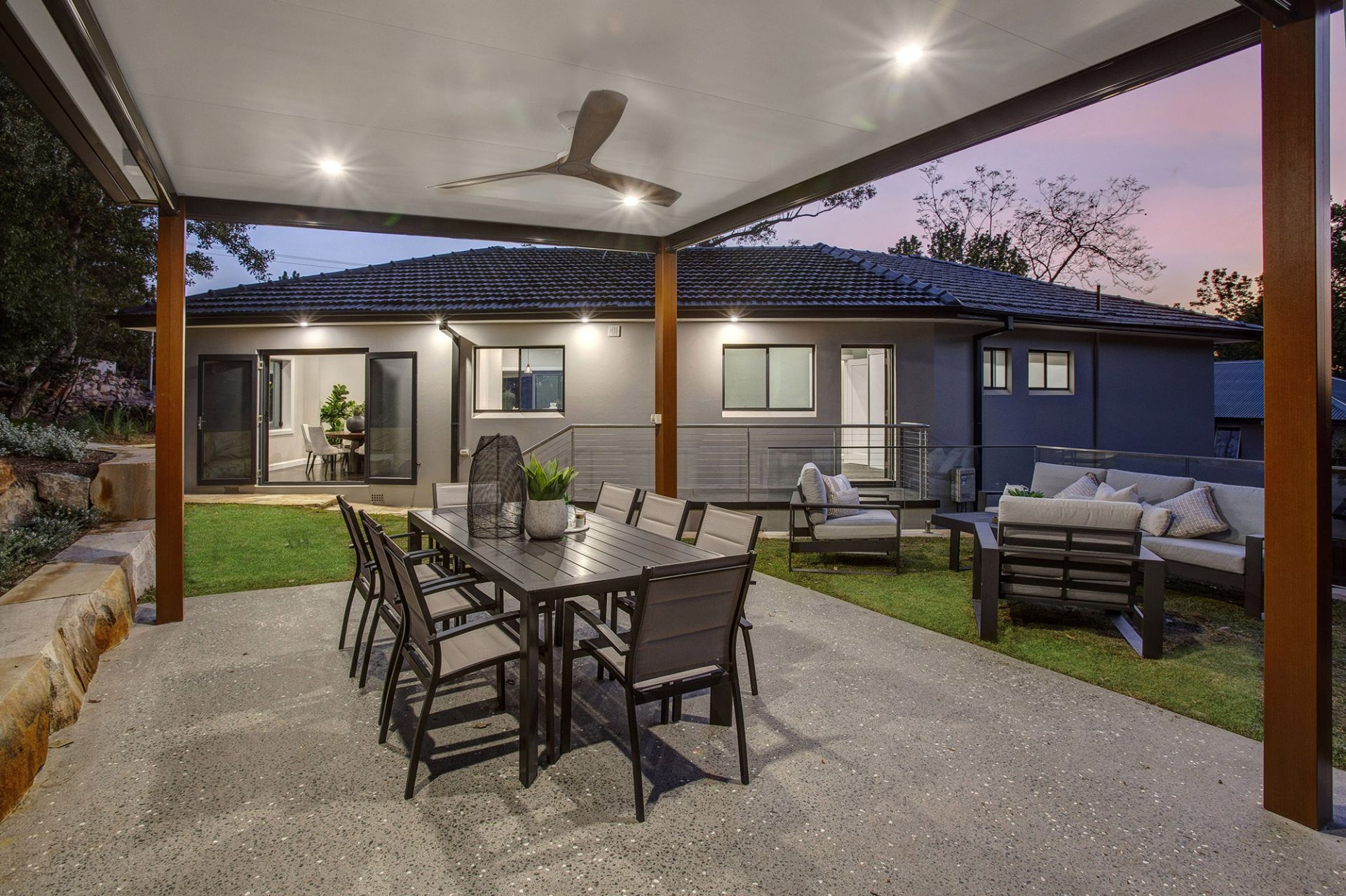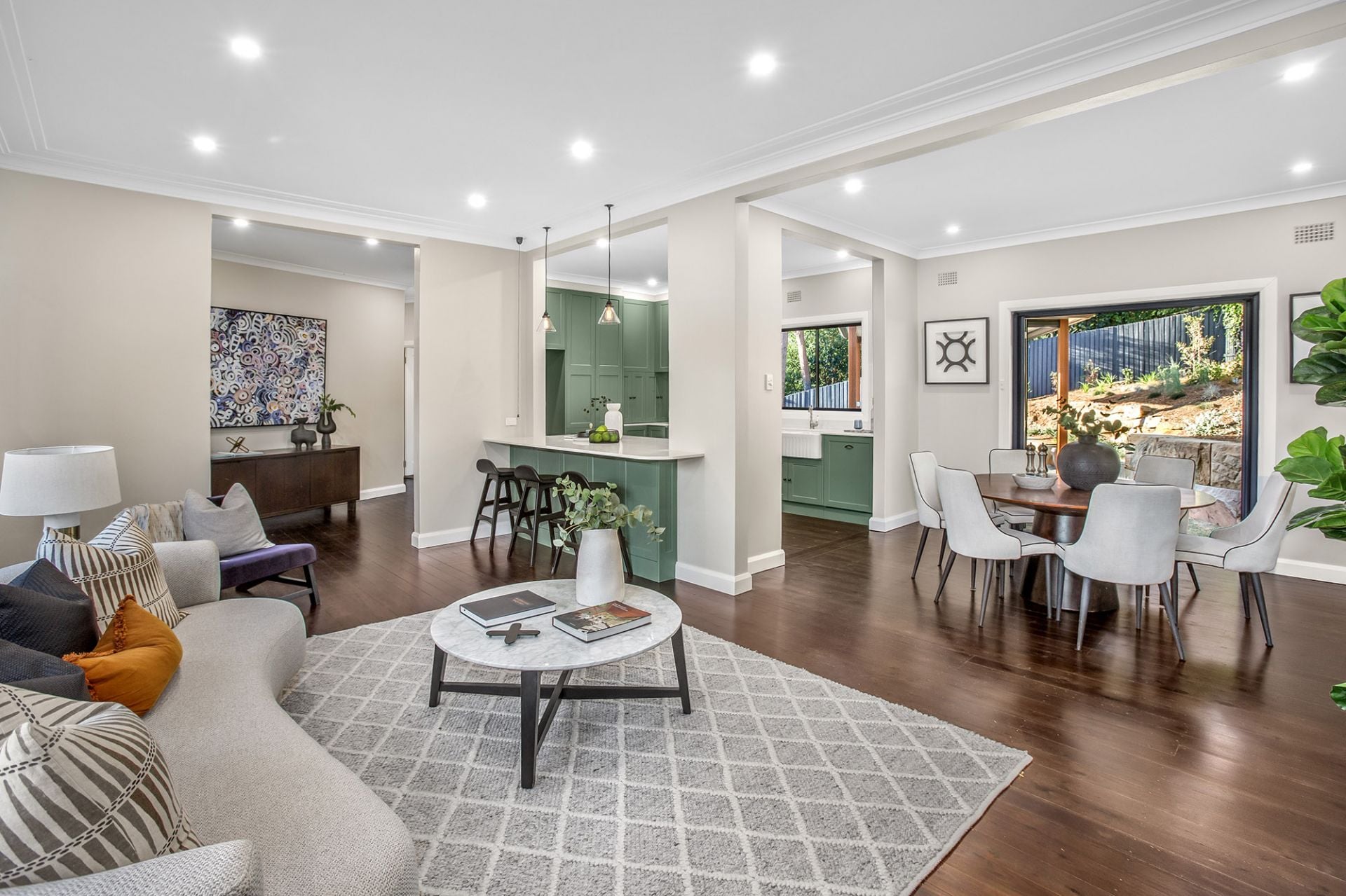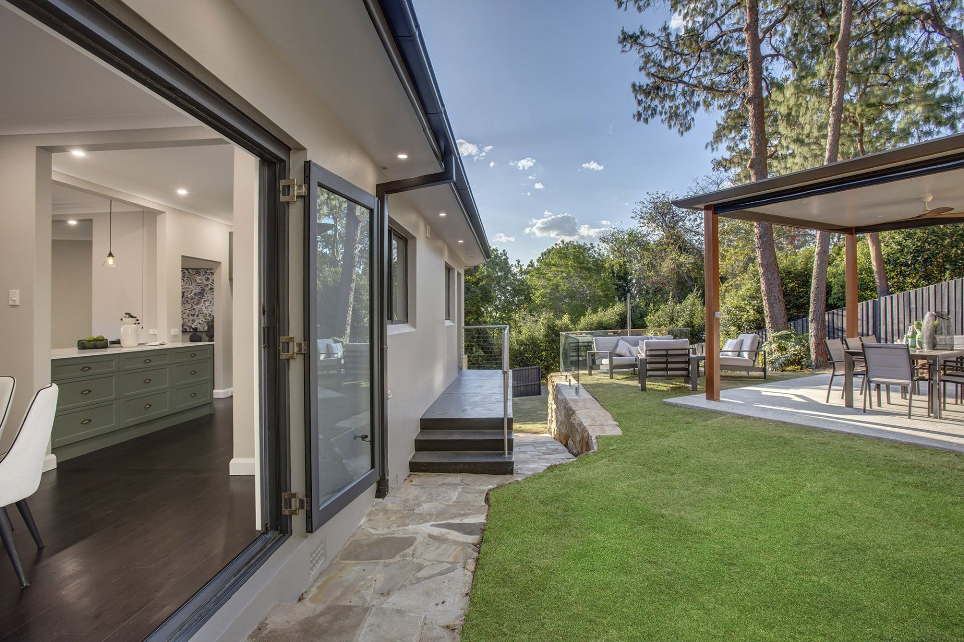 -Open plan living-dining areas flow out to covered outdoor entertaining and level lawns