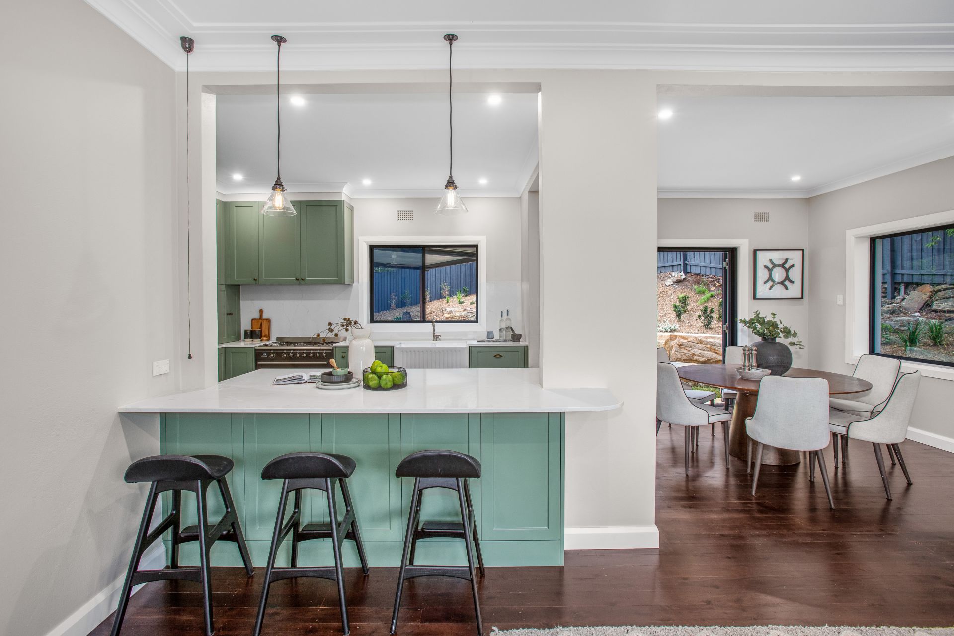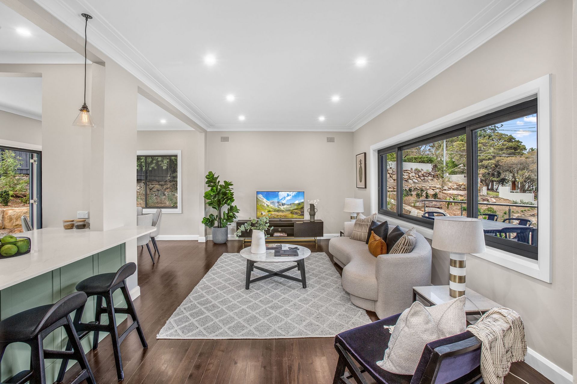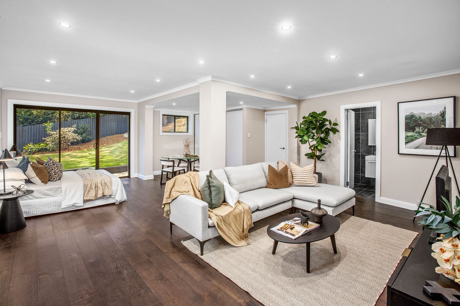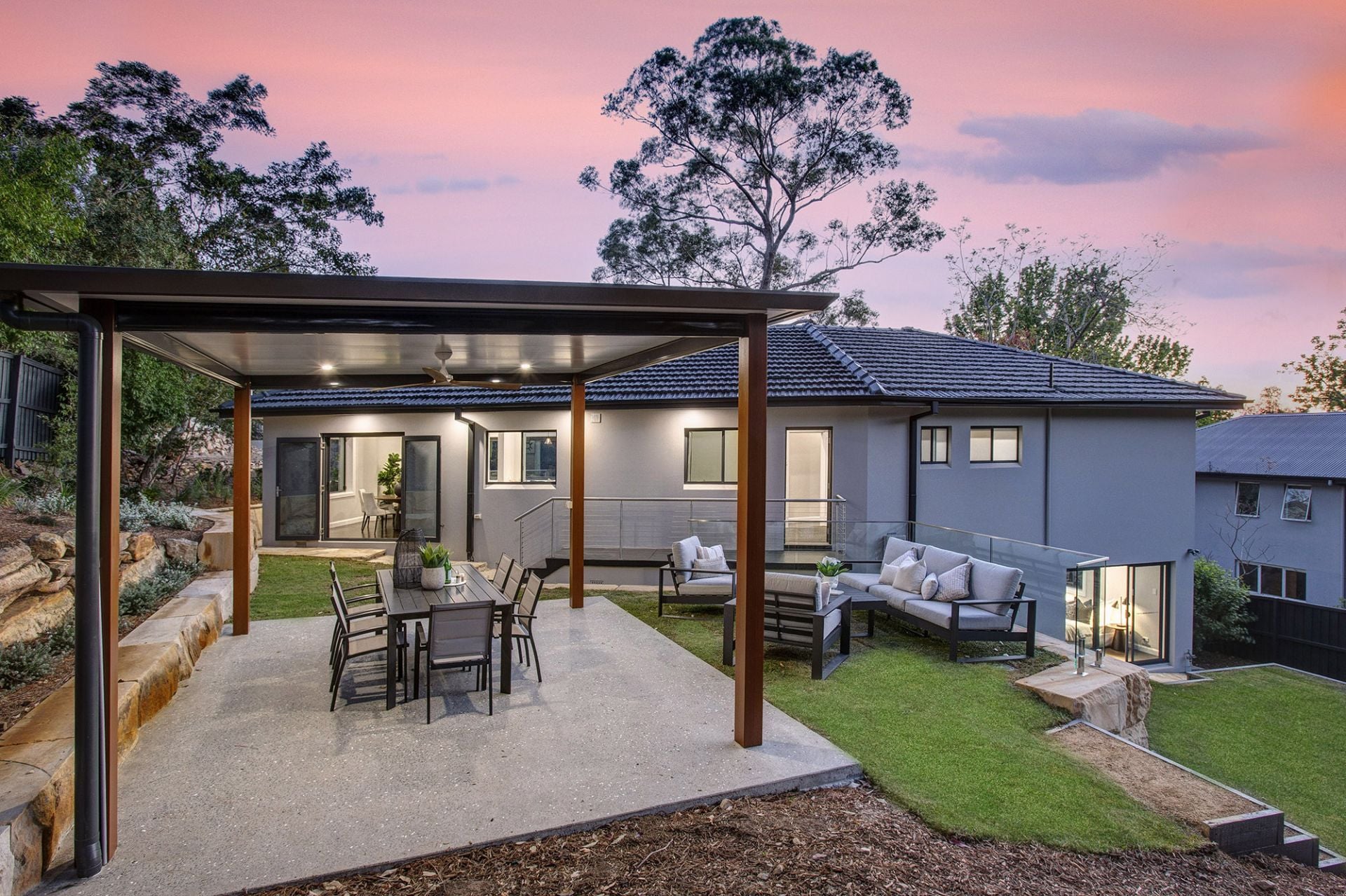 -Open plan living-dining areas flow out to covered outdoor entertaining and level lawns