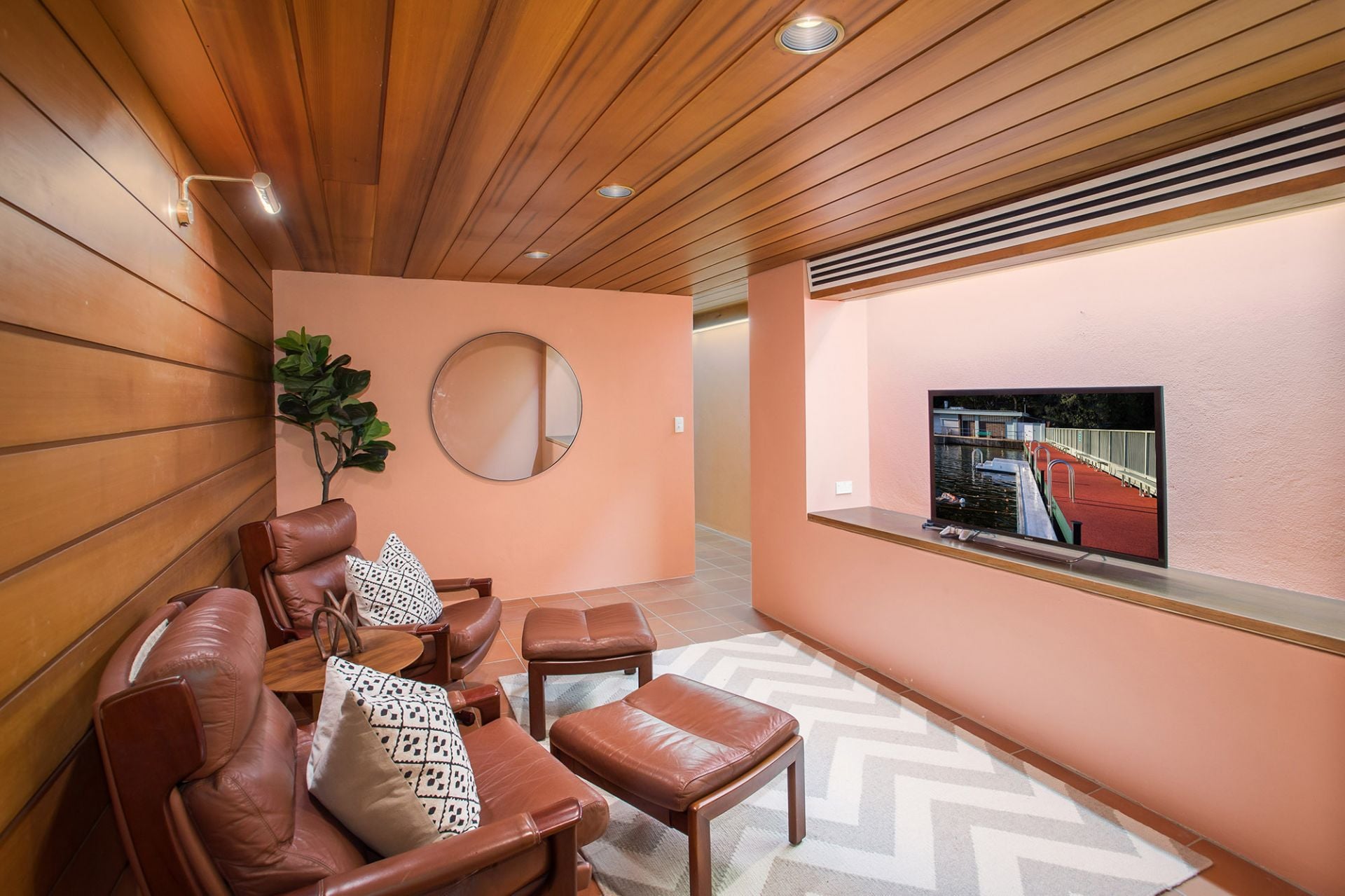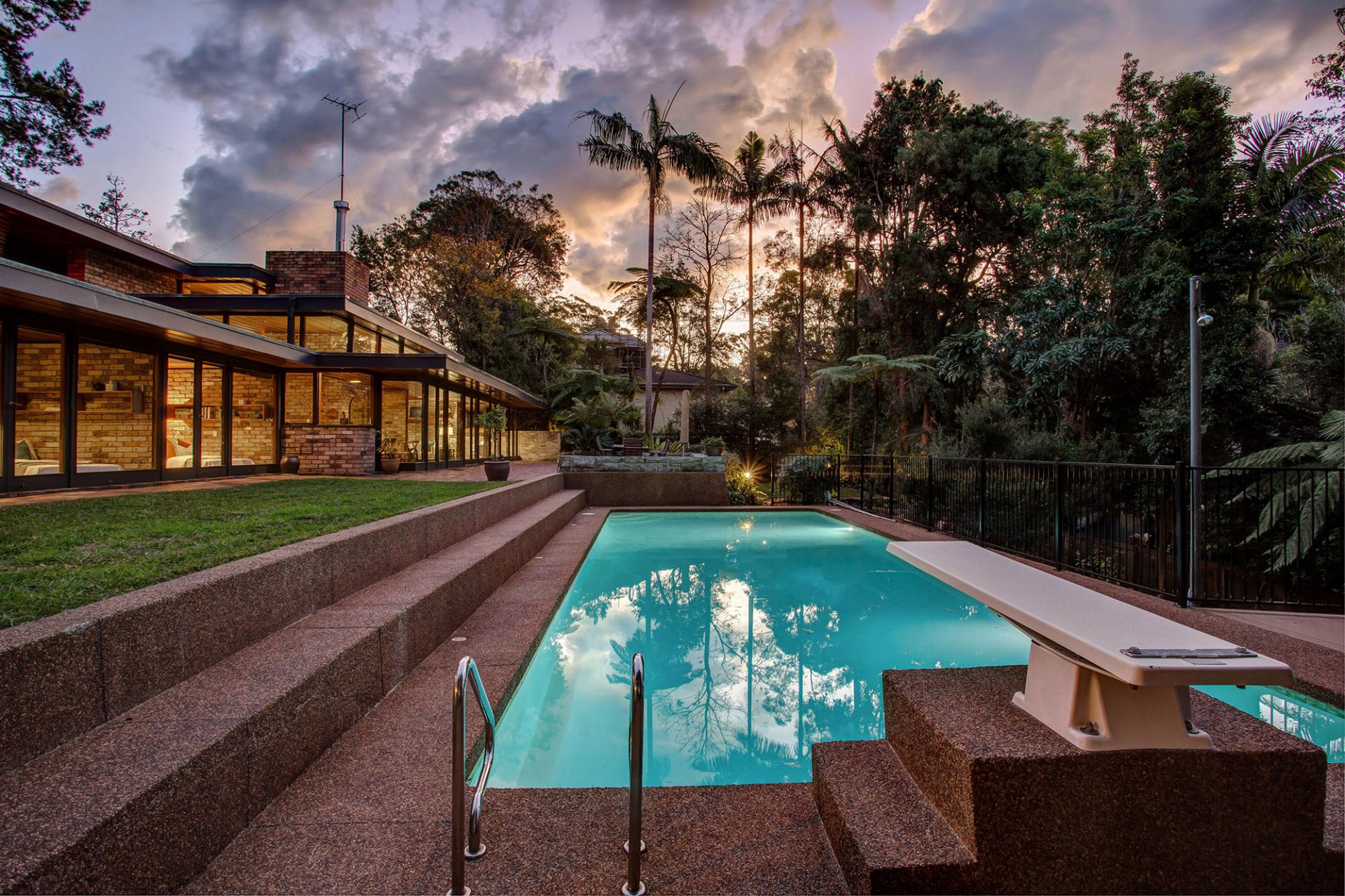 The outdoor space is equally impressive, featuring landscaped garden terraces, a large swimming pool with a diving board, and a stylish outdoor entertaining area perfect for hosting gatherings. The property includes parking for two cars plus additional off-street parking. Experience the timeless charm of Bruce Rickard's design, where every detail is crafted for both beauty and functionality. The home's unique style and thoughtful layout make it a rare gem in the heart of Wahroonga. Rickard House II offers a perfect blend of elegance, comfort, and practicality, making it an ideal home for discerning buyers.