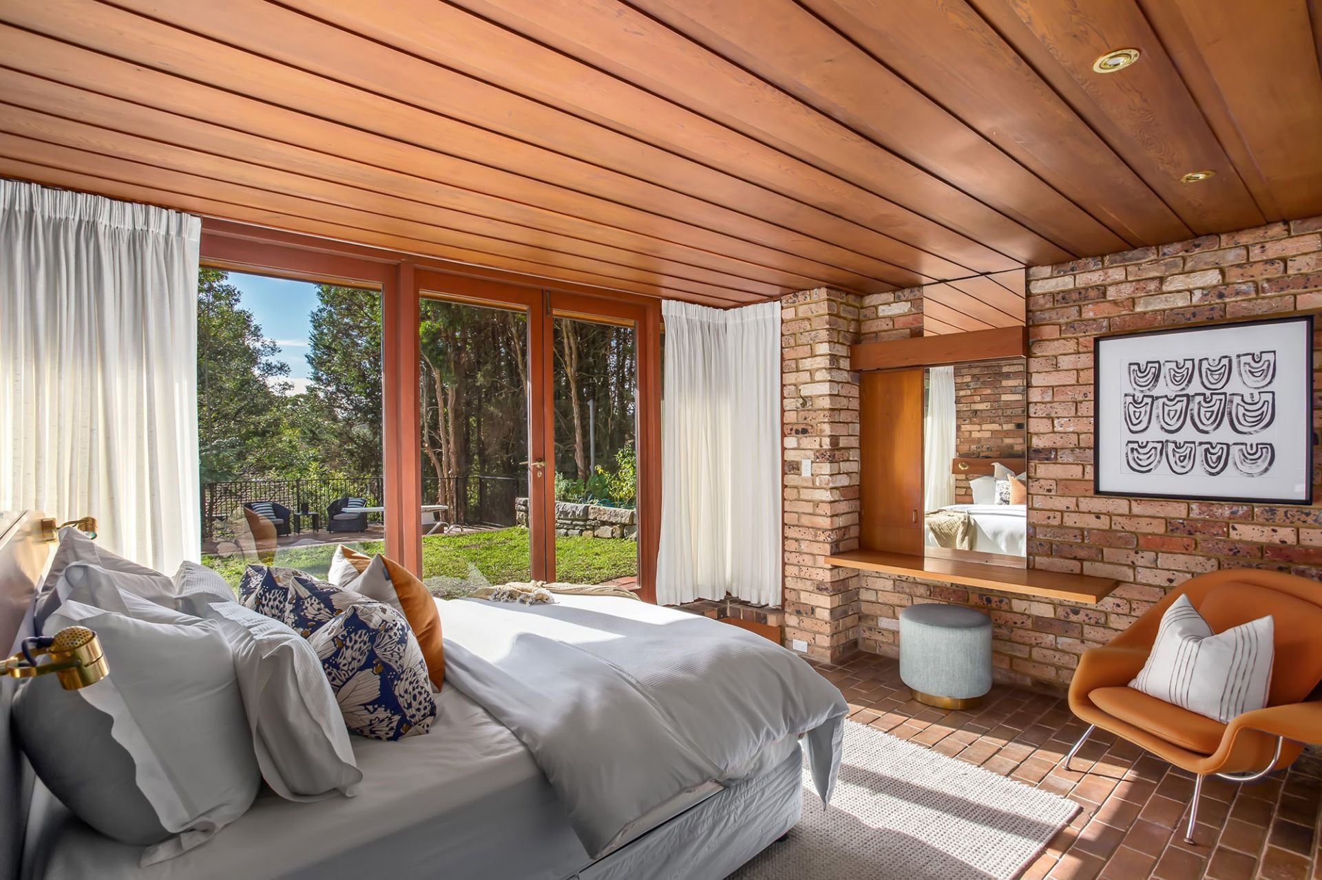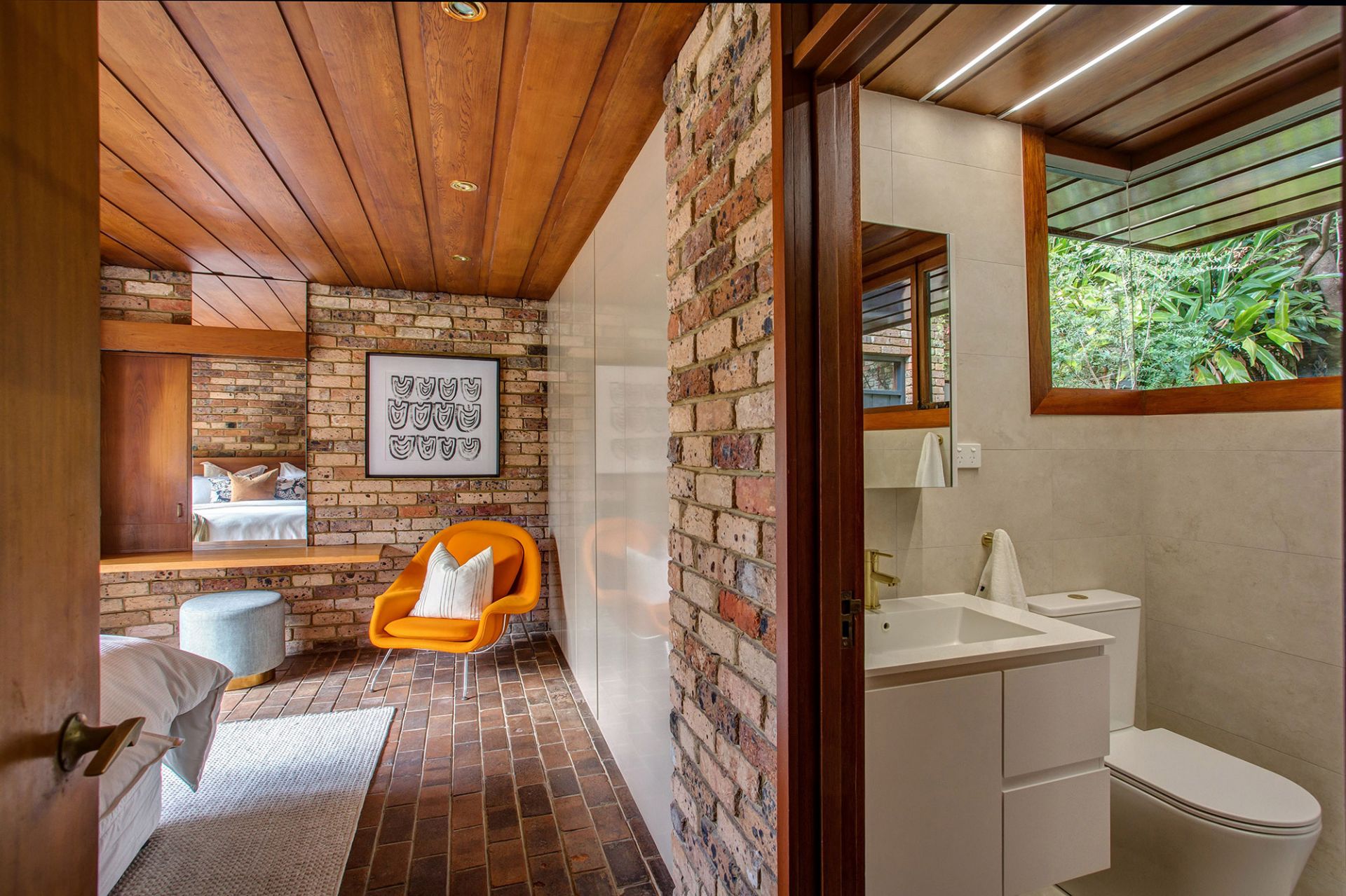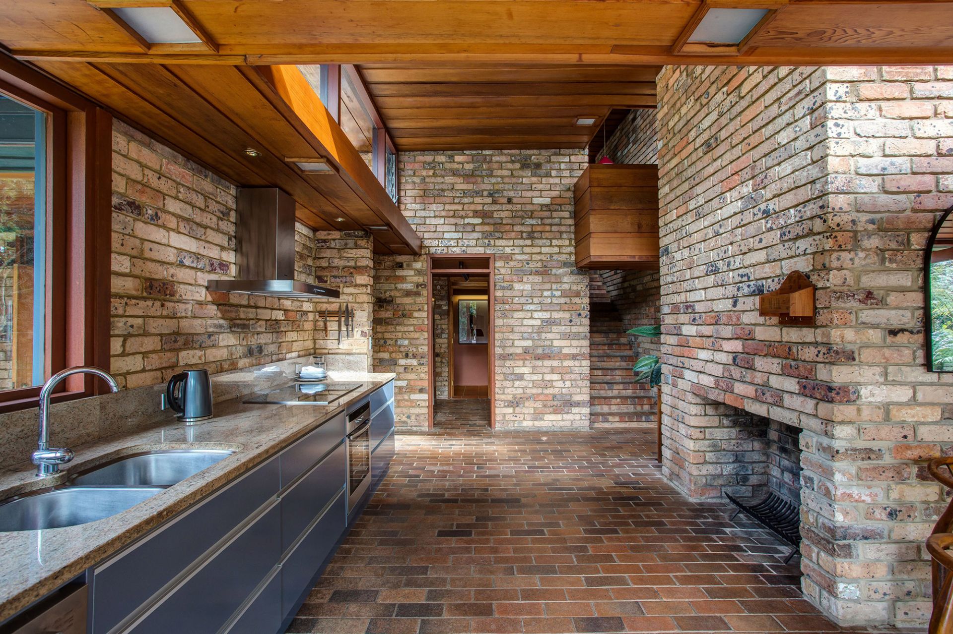 Rickard House II is designed to step down the site, opening up to breathtaking views. The living room is often described as one of the best in Australia, combining cosy ambience with expansive vistas. The large windows flood the interiors with natural light, creating a warm and inviting atmosphere throughout the day. The home features five spacious bedrooms and three elegant bathrooms, providing ample space for family and guests. The open-plan design is highlighted by beautiful sandstock brick walls, Australian cedar ceilings, and large windows that bring in plenty of natural light.