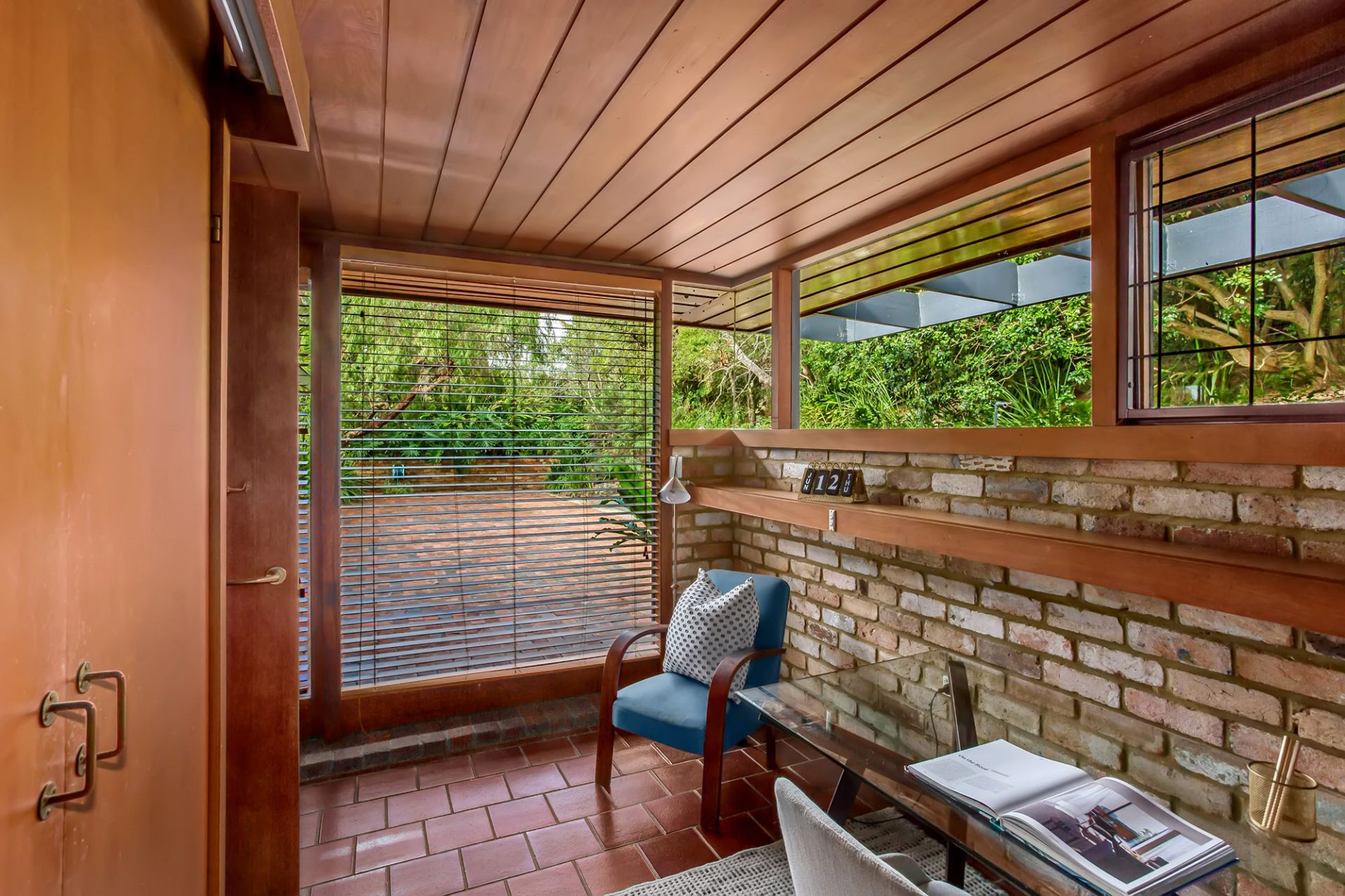 Designed by the renowned Bruce Rickard and completed in 1961, this home continues the strong legacy of his earlier works with its distinctive rustic modernist style, showcasing his ability to blend indoor and outdoor spaces seamlessly.